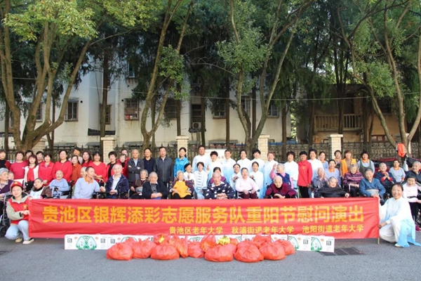 為弘揚尊老、敬老、愛老的中華民族傳統美德,10月18日上午,貴池區老干部服務中心組織區老干部“銀輝添彩”志愿服務隊走進池州市綜合養老服務中心,開展重陽節慰問活動。