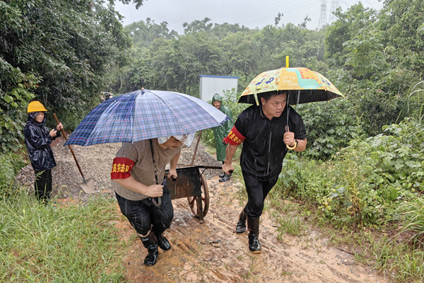 江口街道查村社區防汛突擊隊員杜華杰是一名退伍軍人,今年27歲,也是一名有著5年黨齡的共產黨員。當接到防汛任務時,他主動請纓,毅然投身到防汛一線。6月30日上午,為保障防汛道路正常通行,防汛物資及時運送現場,他和其他防汛隊員一起對查村圩防汛堤段泥巴路進行搶修,過程中有隊員提醒他快穿上雨衣,以免生病,他卻擦了擦臉上的雨水和汗水,笑著說:“不穿了,這樣干活更利索,干完了趕快去下一個點”。(通訊員 張婷婷)