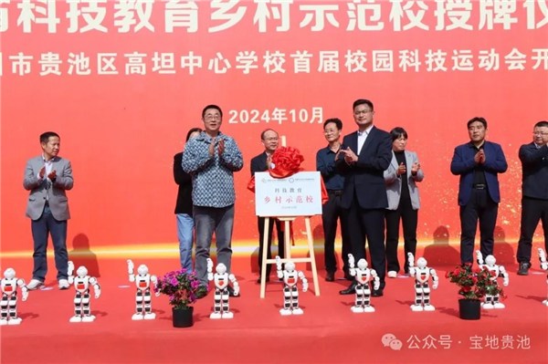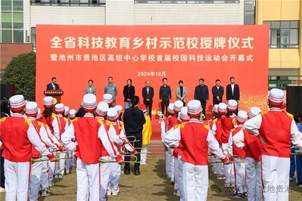 10月29日,全省科技教育鄉村示范校授牌儀式暨池州市貴池區高坦中心學校首屆校園科技運動會開幕式在貴池區高坦中心學校舉辦。省科協黨組成員、副主席紀光水,省青少年科技活動中心主任汪曉東,池州市科協主席龍騰,區委常委、副區長汪賽榮,省、市、區有關部門負責人出席授牌儀式。