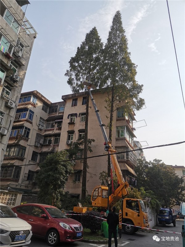 團結小區居民反映,居民樓內水杉樹高度過高,已經超過建筑樓,如果遇到強風天氣,不僅可能損壞房屋,更會威脅到人身安全。“接到居民反映后,我們迅速協調有關部門,請來了施工隊給這兩棵大樹處理掉了。砍伐下來發現大樹的中心已經有蟲蛀的跡象,及時處理可算是解決了一個安全隱患。”古舜社區居委會工作人員表示。