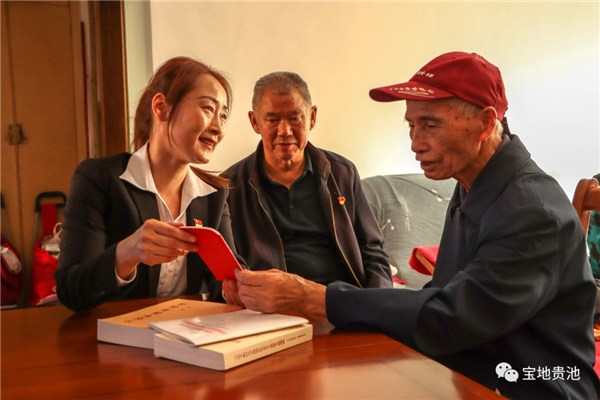 通過線下定期開展集中學習、黨委班子送學上門、黨員志愿者幫學助學,在線上依托各黨支部、流動黨員微信群推送先鋒有聲書、電子資料等方式,古舜社區實現了主題教育線上線下學習全覆蓋。截至目前,該社區黨委已經為12名困難黨員 “送學上門”,向15名流動黨員郵寄學習書籍,確保所有黨員“不缺課”“不漏學”。