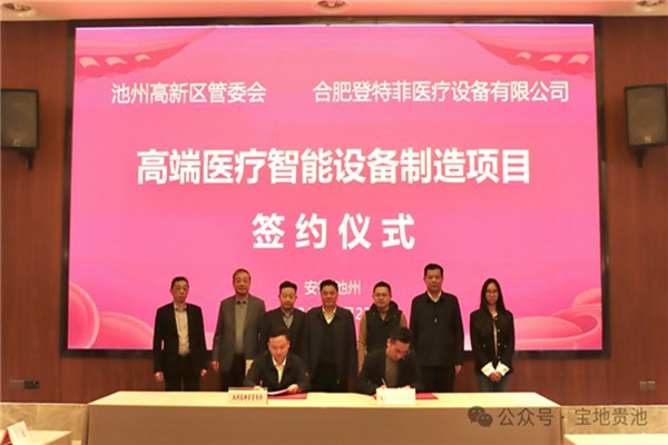11月23日,池州高新區(qū)和合肥登特菲醫(yī)療設(shè)備有限公司簽署合作協(xié)議,高端醫(yī)療智能設(shè)備制造項目正式落地貴池。市委常委、區(qū)委書記馬勝利出席儀式并講話。區(qū)長錢松主持簽約儀式。合肥登特菲醫(yī)療設(shè)備有限公司董事長黃開先,安徽亞安集團董事何亞飛,區(qū)委常委、池州高新區(qū)黨工委書記兼管委會主任方文生,副區(qū)長張亮,及有關(guān)區(qū)直部門、園區(qū)、企業(yè)主要負責人參加簽約。
