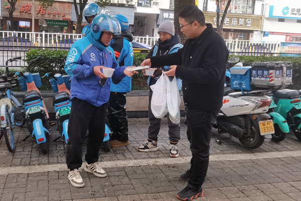 香濃的臘八粥,暖身更暖心。活動中,工作人員為外賣小哥們送上一份份“特殊外賣”(熱氣騰騰的臘八粥),并叮囑他們天冷注意防寒保暖,在“使命必達”時注意交通安全。小哥們接過粥時既驚喜又感動,有位小哥樂呵呵地說:“我從早上6點就開始接單送餐,早飯還沒來得及吃,喝了這碗粥,身上暖了,心里也是暖乎乎的。”在這寒冷的冬季,一碗碗臘八粥讓他們感受“甜在嘴里”,一股股暖流傳遞到每位外賣小哥身上,讓他們感受“暖在心頭”。
