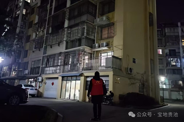 此時,記者跟隨著池口社區(qū)工作人員蘇文翠的腳步前往“赴約”。經過一棟樓下,蘇文翠注意到一樓的燈光已經亮起,便安心地前往其他樓棟再“轉轉”。