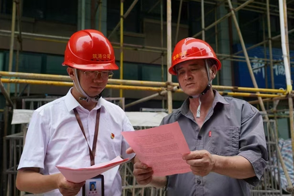 “黨建+群眾工作”,凝聚建設(shè)合力。筑港公司黨支部充分發(fā)揮黨組織密切聯(lián)系群眾優(yōu)勢,在項目一線積極開展群眾工作。黨員深入施工班組,了解員工工作生活中的困難,及時給予幫助解決。開展高溫慰問送清涼活動,不僅讓一線施工人員感受到了黨組織的關(guān)懷和溫暖,也進一步激發(fā)了他們的工作熱情和積極性。同時,鼓勵員工為項目建設(shè)建言獻策,對合理建議予以采納并獎勵,激發(fā)員工參與項目建設(shè)的積極性與主動性,凝聚起全員參與項目建設(shè)的強大合力。