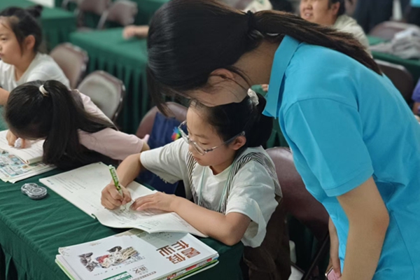 志愿者為孩子做課業(yè)輔導(dǎo)