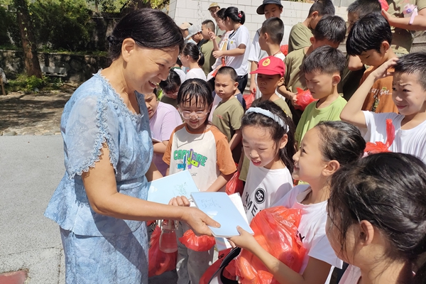 7月25日,區關工委一行帶著滿滿的關懷前往基地開展慰問活動。汪漪主任等人為貴池區及三所園區關工委共39名營員送上了精心準備的慰問品。他們還前往營地宿舍,實地察看孩子們的生活起居。看到孩子們小小年紀卻展現出堅強的意志和獨立的能力,大家紛紛豎起大拇指表示贊許。當聽到孩子們親切地喊著“謝謝爺爺、謝謝奶奶”時,他們心中滿是欣慰。此外,區關工委還為全市100名營員以及來自阜陽市太和縣的10名營員送去了學習用品,期待孩子們在夏令營中度過一段快樂難忘的時光。